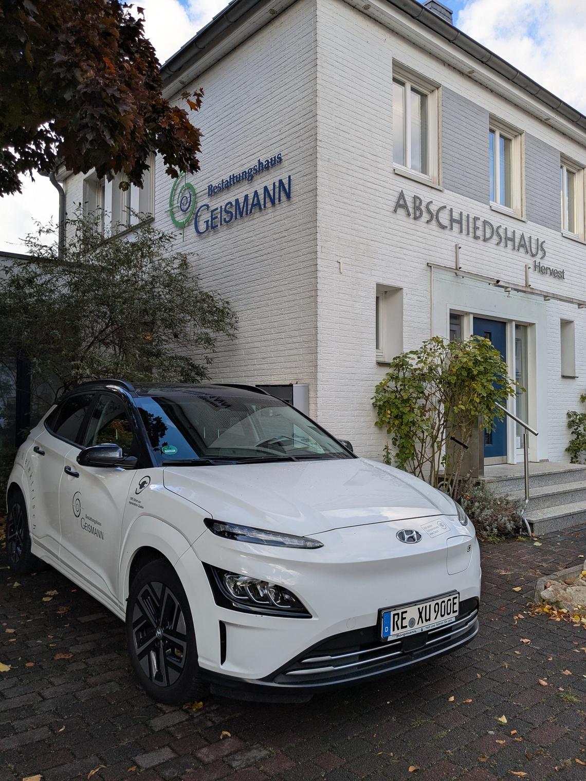Für den Transport von Dekorationselementen auf Friedhöfen nutzen wir seit 2025 ebenfalls ein vollelektrisches Fahrzeug.